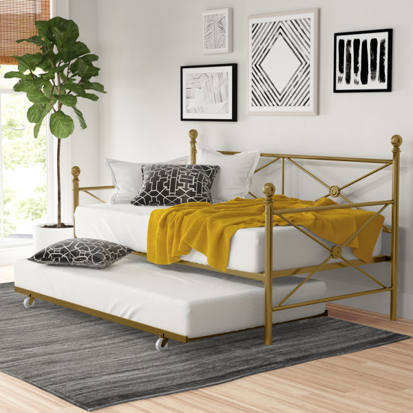 This multifunctional piece of furniture can give you (or your guests) all the extra space you need. Ebern designs crafts a variety of moderately priced furniture, including daybeds with trundle bed options. Featuring a twin bed up top, and a twin trundle bed tucked underneath, you can fit four kids or two adults comfortably with this daybed. West elm urban daybed & trundle. The height of the trundle is either 16.93 inches when extended or 7.09 inches when collapsed down. The novo gratz is the best trundle bed for you which has a bright pop metal daybed, and of course, the trundle is also available in three amazing colors so that you can choose the one according to your needs. This next daybed is one of the best quality daybeds with a trundle that is incredible for saving space while providing extra sleeping space. They make the perfect transition bed for children, and the addition of a trundle underneath is a huge bonus for sleepovers and guests. Since it's excellent comfort and quality we've comprised this crane as our place. The day bed is available in two distinct, easy to clean, protective finishes. Its modern and plush frame design is best used with thicker mattresses, and it is upholstered with polyurethane leather. Little seeds valentina upholstered daybed with trundle. They tend to be higher off the ground than other daybeds, but the trundle bed will still be a twin size.