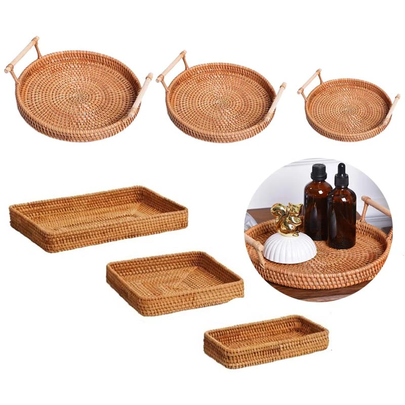 Rattan decorative tray round rattan coasters table decor eco friendly coasters handmade round wicker serving basket tray bamboo viet tray. Rattan basketry from natural rattan furniture will help you to store your stuff like toys, magazines, paper, and other small pieces.you can also use rattan basket as laundry basket, as pottery plants. 4 out of 5 stars. Save and buy at wholesale. Natural rattan serving tray with handles, handmade round wicker bread basket tray, woven baskets for fruit bread parties coffee breakfast round decorative tray (set of 2) by bayou breeze $162.99 ($81.50 per item) $179.99